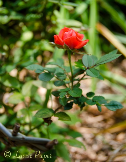 To many, it will come as no surprise that I love roses. However, I am not a rose snob.  I love large, elegant, fragrant blooms and can chat away about this and that variety. When I go to a garden center, I have to examine every rose bush and ask all sorts of questions about the growth habits of each variety before I can bring one home. But I also have a penchant for buying those little potted rose plants with the tiny, highly structured flowers  that sell in grocery stores for a few bucks around the holidays – a gift for my garden. When I buy them over the winter, I keep them alive inside until I can plant them outdoors in the Spring; and, they have turned out to be surprisingly winter hardy for Kansas. My oldest few have been in the garden for four years now. I have around a dozen grocery-store-bought miniature rose bushes in the garden, give or take, ranging from the most delicate pink to bright coral. I don’t know their names, but that doesn’t matter. What’s in a name?