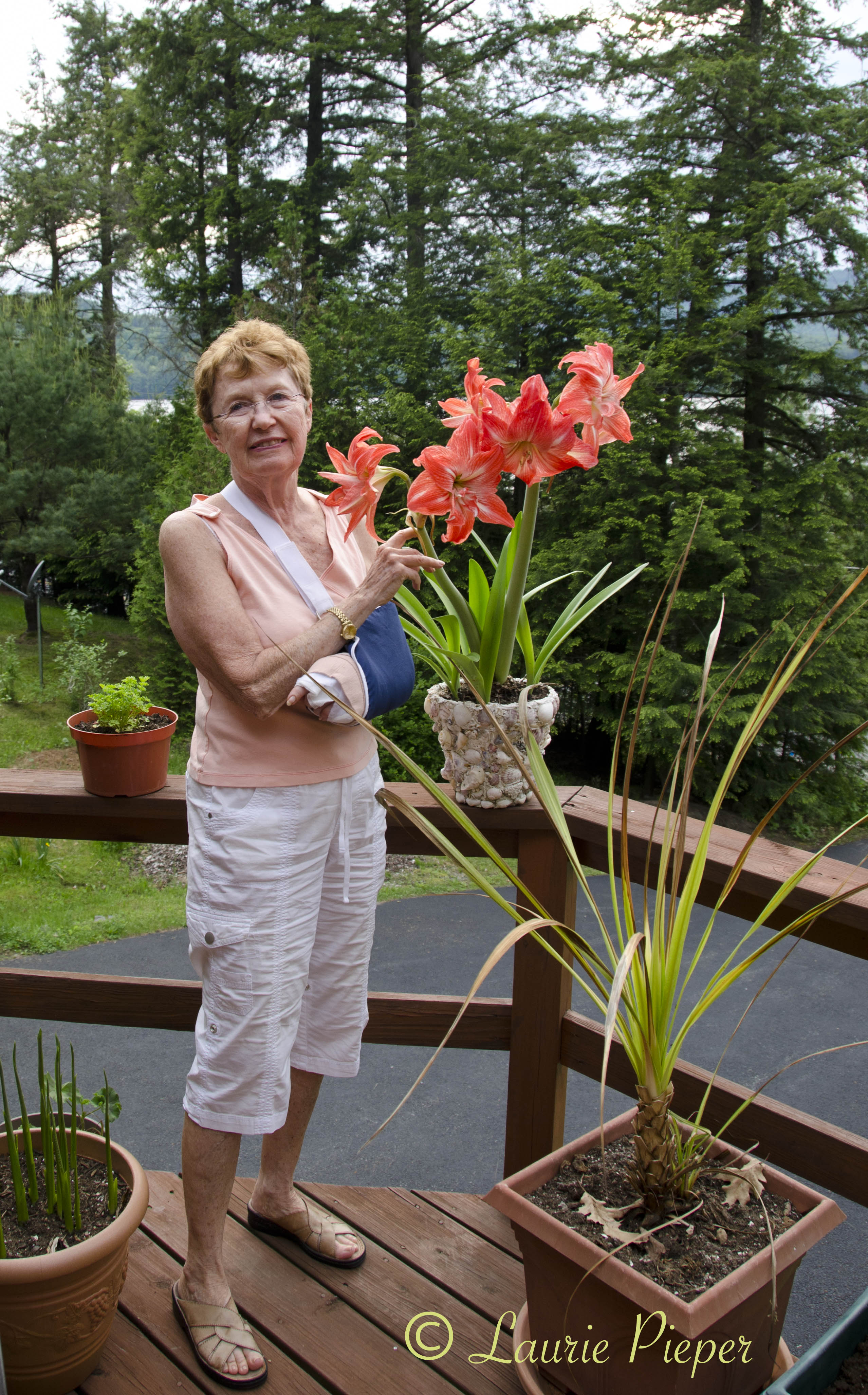 My mother is a gardener. It runs in the family. While visiting Mom, I helped out in her garden – pruning trees, planting annuals, weeding, watering and so forth. Here are a few pictures of my lovely mother and her garden which is just starting to bloom for the season. She can’t wait to get back out and work in it. Soon, Mom : )