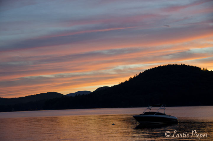 My mother lives in a beautiful location in the Adirondack Mountains of upstate New York. The gorgeous scenery prompts her to exclaim, “look at the view!” whenever she has company – something we in the family love to tease her about. During a recent visit, I took these photos from her beach. Indeed, it is a lovely view … in any direction, any time of the day.