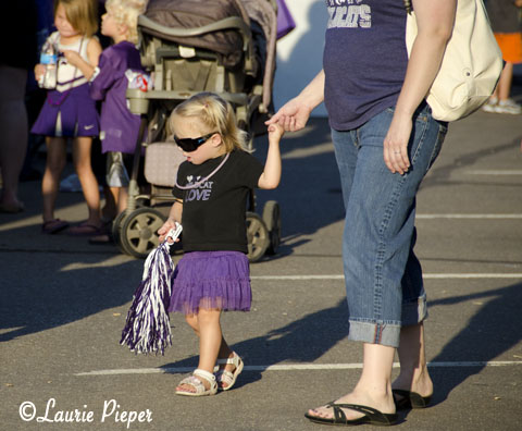 Every year on the Thursday and Friday nights before the first home K-State football game, Purple Power Play on Poyntz puts on a pep rally. The city closes off several blocks of Poyntz Avenue – the main street through downtown – for vendors to set up booths and people to mill around. The marching band, cheerleaders, football team and coaches turn out. Here are a few photos from this year’s Thursday night portion. On Friday night, after all the other festivities are over, they set off fireworks. It is a popular event with an estimated 20,000 people attending over the two-day period.