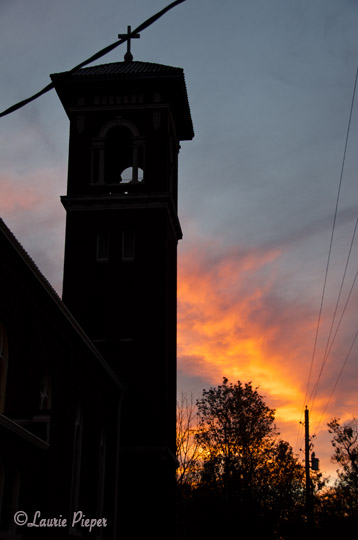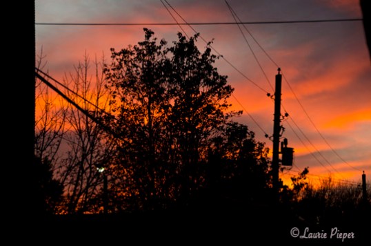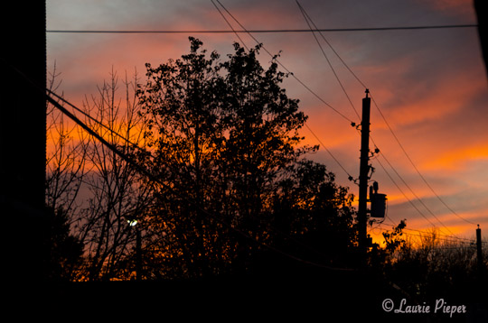 I took the pictures below at sunset this evening from the alley behind our house. What a sky!