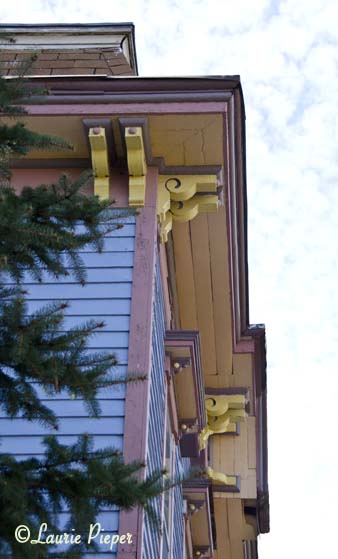My favorite thing about living in an historic neighborhood is the variety of architectural details. Unlike many modern neighborhoods in which properties are expected to conform to a set of design standards, in the older neighborhoods, there were often a great variety of styles. The Morning Star is part of the Houston and Pierre Streets Historic Residential District. The houses in this district are from the late 1800’s to early 1900’s and represent  Queen Anne, Italianate, Classical Revival, Tudor, and Vernacular Folk styles. Built in 1902, our house, a Queen Anne “transitional”, is one of the newer ones. This afternoon, I went for a stroll around the neighborhood and photographed some of many details one can see just walking around. The first three photos are from our house.