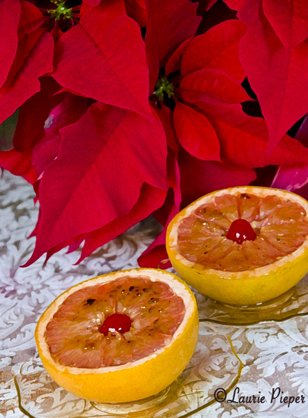 Note: If you do not have a broiler, you can use a chef’s torch to melt sugar. If you do not have a chef’s torch, let the sugar soak into the grapefruit for about 10 minutes before serving. The sugar will not caramelize, but the flavor will still be pleasing.