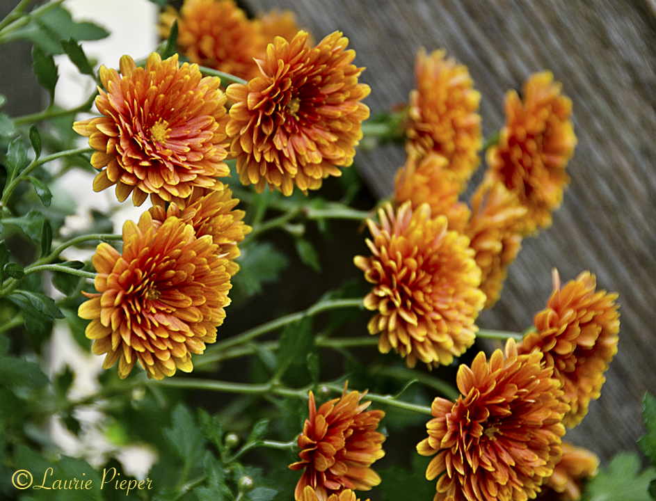 Orange chrysanthemums in the garden this morning …
