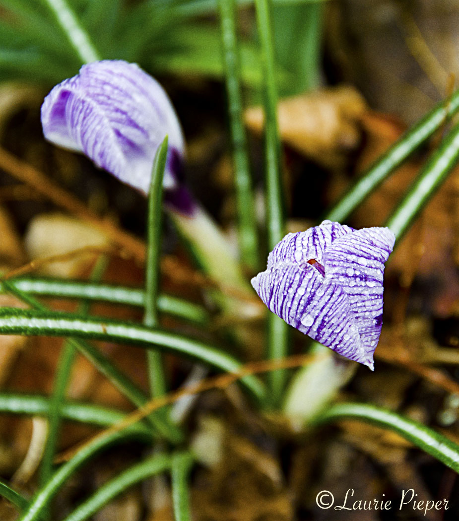 Oh, joy! Two little Pickwick Crocuses popped their heads up today – the first flowers of the season to come up in my garden. Though they are just wee little things, it is a wonderful sign because once blooms start appearing more will soon follow!